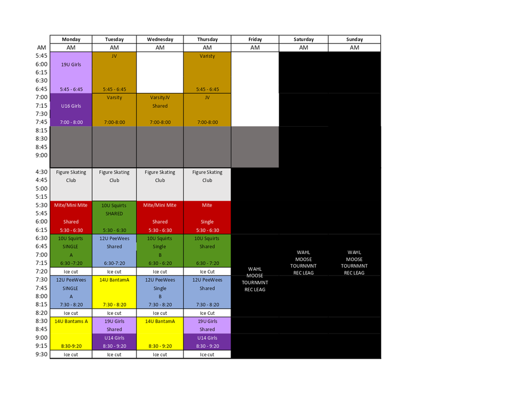Each team with the exception of Mini Mites will have 3 touches per week in practice ice. We do this to ensure the best developmetal opportunities for our players. We have only one sheet of ice and with multiple users at Snow King Sports and Events Center we wil have shared ice slots or half ice practices for most teams.